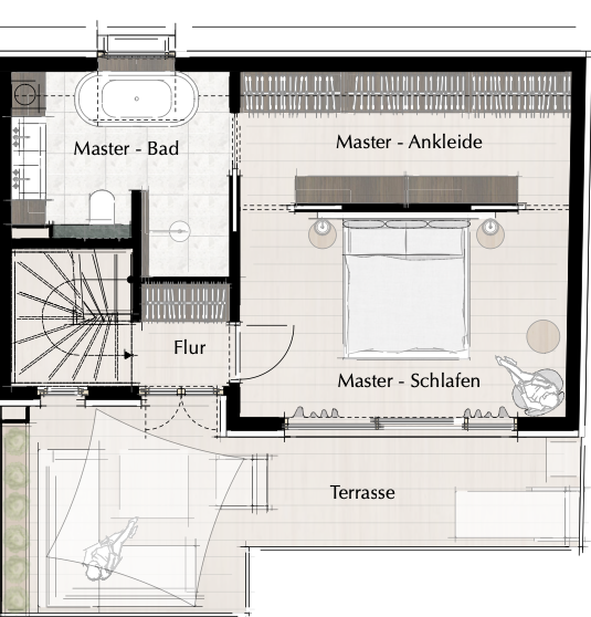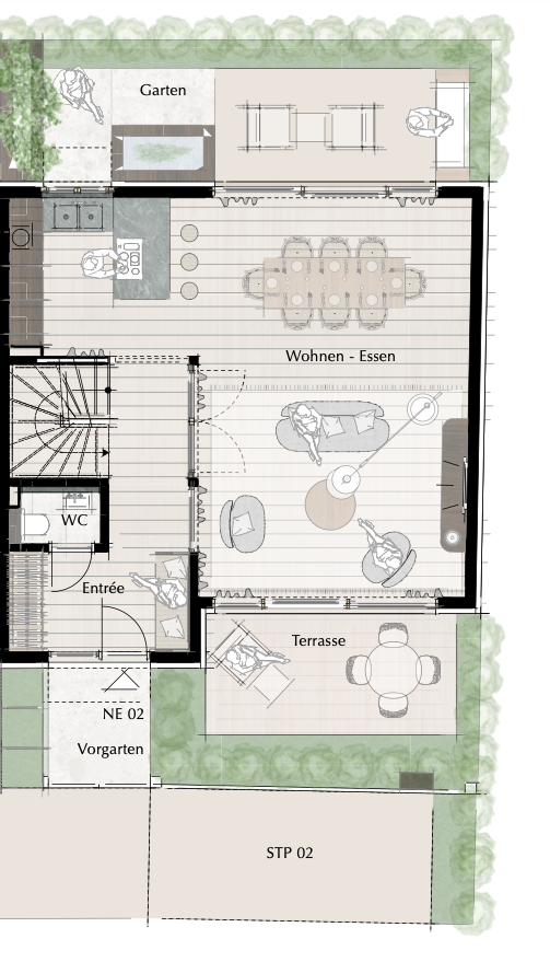 Aber fangen wir von vorne an: Entrée des Townhouses bildet eine charmante Garderobe mit gemütlicher Sitznische, die den Blick auf den großen Wohnbereich mit offener Küche, Essecke und Blick auf den kleinen, aber feinen Garten bzw. die Terrasse freigibt. Dann geht’s hoch hinaus: Zunächst ins 1.OG, hier warten zwei Schlaf-, ein Arbeitszimmer sowie ein geräumiges Tageslichtbad auf Ihre Liebsten. Das Schönste haben Sie allerdings noch nicht gesehen: Ihr persönliches Reich im 2. OG mit Masterbedroom, Ankleide, Bad ensuite und eigener Dachterrasse. Jetzt müssen Sie sich nur entscheiden: Welches Zimmer möchten Sie in Gedanken als erstes einrichten?
