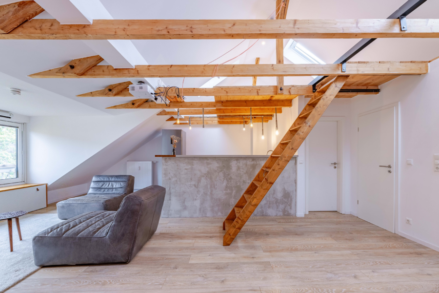 Treten Sie ein in diese 2023 modernisierte Dachgeschosswohnung, die mit ihrem einzigartigen Loft-Charakter und der offenen, luftigen Bauweise ein besonderes Wohngefühl vermittelt. Die Wohnung erstreckt sich über ca. 75,57 m² Wohnfläche und bietet zwei großzügige Zimmer. Die Wohnung wird möbliert vermietet – das Mobiliar ist in der Kaltmiete enthalten.