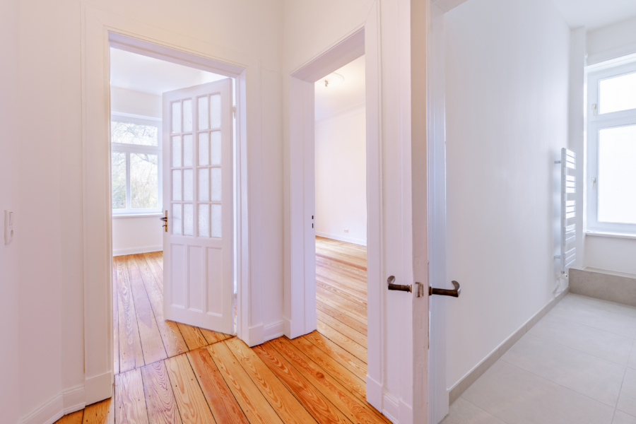 Die hintere Wohnung präsentiert sich bereits in voll-ständig renoviertem Zustand. Hier wurden unter