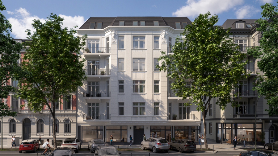 Der Urzustand der Fassade des um 1900 erbauten Stadtpalais wurde mit seinen wunderschönen Stuckornamenten detailgetreu wiederhergestellt, die Balkone nach historischem Vorbild liebevoll rekonstruiert und das Dach aufwendig aufgestockt, um hier zwei luxuriöse Penthäuser entstehen zu lassen.