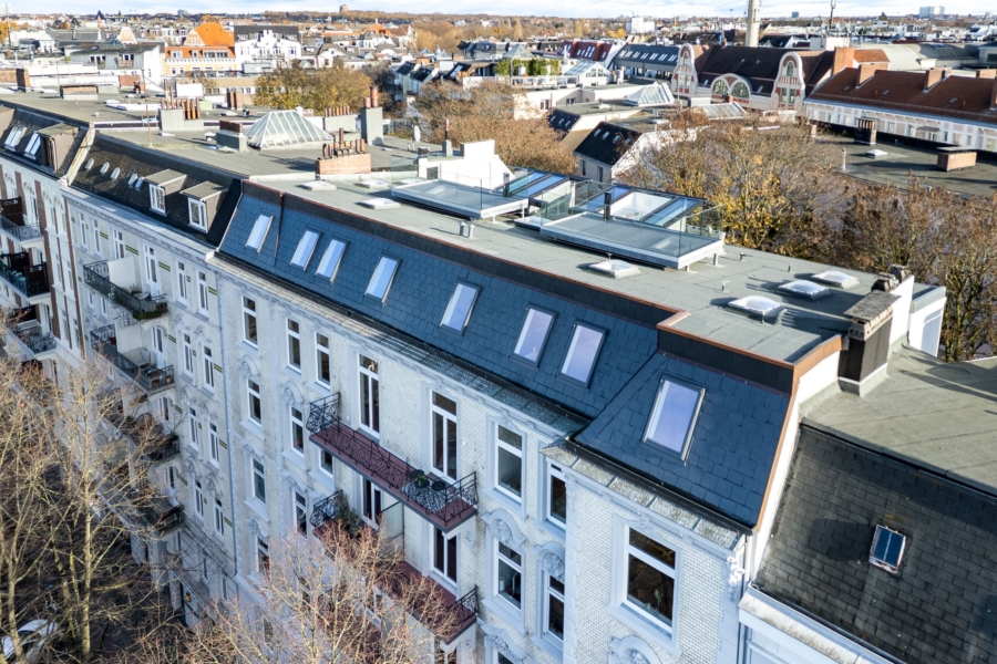 Dieses exklusive Penthouse befindet sich in einer der begehrtesten Adressen Hamburgs – im charmanten, grünen Stadtteil Eppendorf.